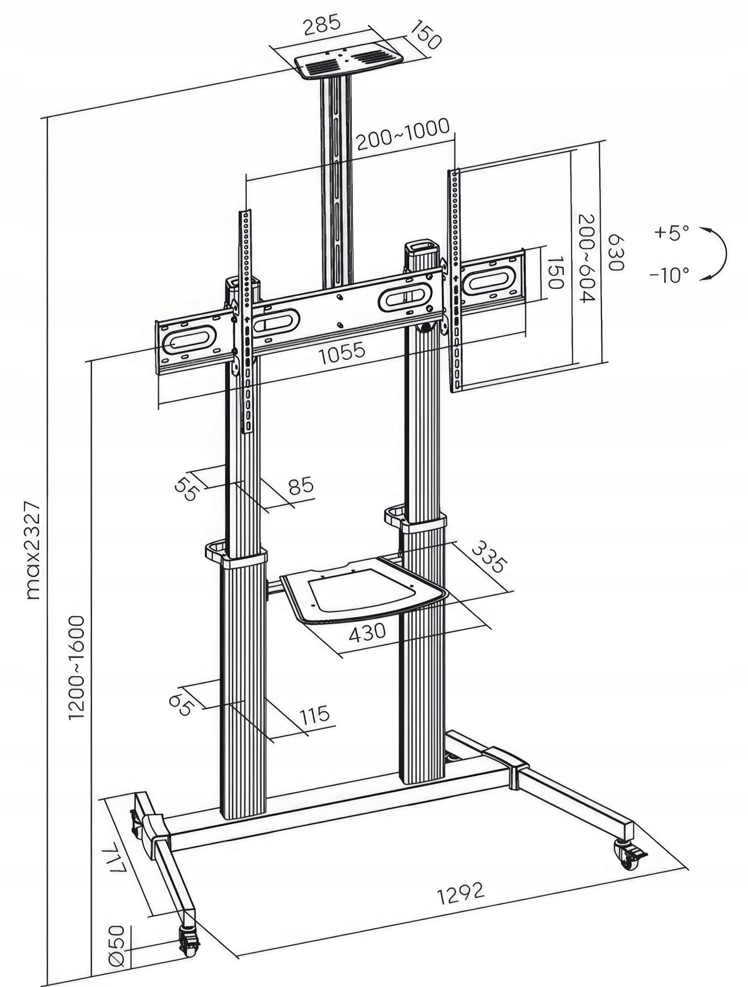 Inne cechy - Zaawansowana regulacja wysokości stojaka. Regulowana półka na kamerę do telekonferencji umiejscowiona powyżej telewizora