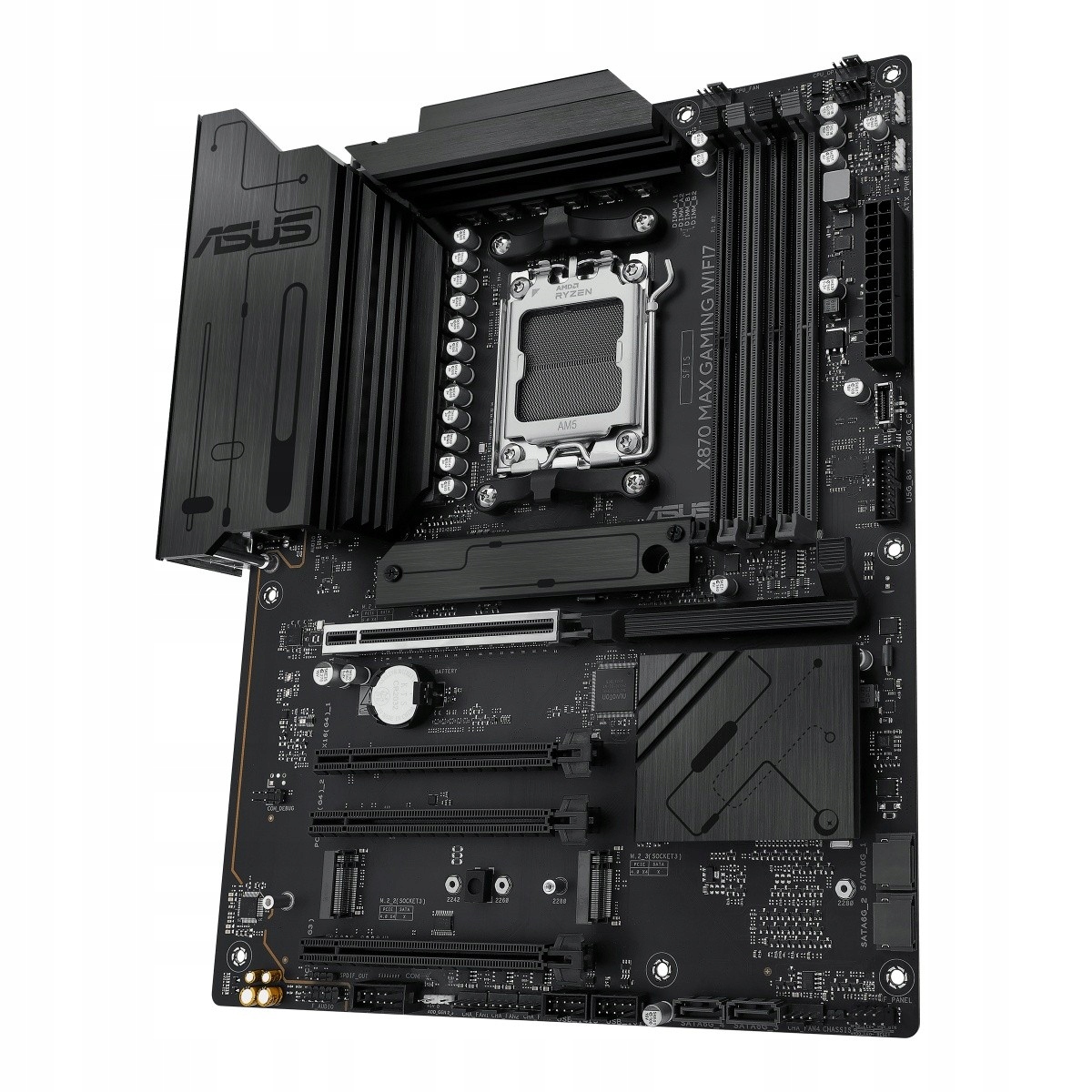 Płyty główne ASUS z serii X870 zostały profesjonalnie zaprojektowane, aby uwolnić pełny potencjał procesorów AMD Ryzen z serii 9000. Oferująca solidną konstrukcję zasilania, kompleksowe rozwiązania chłodzenia i inteligentne opcje dostrajania, płyta główna X870 MAX GAMING WIFI7 zapewnia użytkownikom i osobom samodzielnie budującym komputery szereg optymalizacji wydajności dzięki intuicyjnym funkcjom oprogramowania i oprogramowania układowego. Został zaprojektowany tak, aby był gotowy na obsługę komputera PC z zaawansowaną sztuczną inteligencją, oferując moc i łączność potrzebne w wymagających aplikacjach AI.