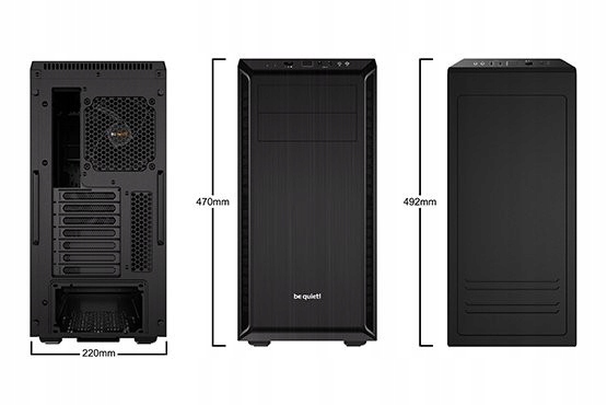 Bardzo wszechstronna konstrukcja. Maksimum możliwości dla Twojego wymarzonego systemu PC.Pure Base 600 oferuje wiele możliwości wyboru komponentów systemu. Trzy gniazda HDD można przestawić, aby umożliwić instalację najdłuższych kart graficznych, a klatkę ODD można zdemontować w celu maksymalnej elastyczności dla instalacji chłodzenia wodnego i napędów.Zoptymalizowane pod chłodzenie wodne. Pełen wybór możliwości chłodzenia wodnego.Pure Base 600 została zoptymalizowana tak, aby idealnie nadawała się do chłodzenia cieczą. Trzy obszary są specjalnie zaprojektowane pod chłodzenie: przód, góra i tył. Możliwa jest instalacja wszystkich rozmiarów radiatorów do 360 mm.Regulowana górna pokrywa. Pomysłowa koncepcja dla chłodzenia wodnego i ciszy.Górna pokrywa Pure Base 600 jest regulowana umożliwiając wybór pomiędzy zwiększaniem chłodzenia systemu lub ciszą. Można ją zamknąć dla osiągnięcia absolutnej ciszy, otworzyć częściowo dla lepszego przepływu powietrza lub pozostawić otwartą, aby zamontować radiator chłodzenia wodnego.Preinstalowane 2 wentylatory PURE WINGS 2. Wyjątkowo cicha praca typowa dla be quiet!Dwa fabrycznie zainstalowane wentylatory Pure Wings 2 z dziewięcioma łopatkami zoptymalizowanymi pod kątem przepływu powietrza zmniejszają turbulencje i zwiększają ciśnienie powietrza: 120 mm z tyłu, 140 mm z przodu. Możliwy jest montaż do czterech dodatkowych wentylatorów chłodzących.Zachowaj bezwzględną ciszę systemu PC. Wyposażone w inteligentne i skuteczne funkcje cichej pracy.Zintegrowany 3-stopniowy regulator obrotów obsługuje trzy wentylatory. Maty wyciszające na górze, boku i przodzie obudowy tłumią drgania. Filtry z przodu i z dołu zapobiegają przenikaniu kurzu do obudowy.