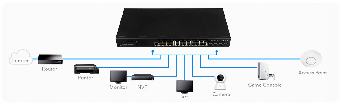 Cudy GS5024S4 oferuje funkcje zarządzania siecią na poziomie warstwy 3 (L3), co daje Ci pełną kontrolę nad ruchem sieciowym. Możesz tworzyć zaawansowane reguły routingu, zarządzać siecią VLAN czy optymalizować ruch między różnymi segmentami sieci. To sprawia, że przełącznik jest idealnym narzędziem do budowy stabilnych, rozbudowanych i elastycznych sieci, które mogą sprostać każdemu wyzwaniu. Dzięki tym funkcjom łatwo dostosujesz swoją infrastrukturę sieciową do specyficznych potrzeb.