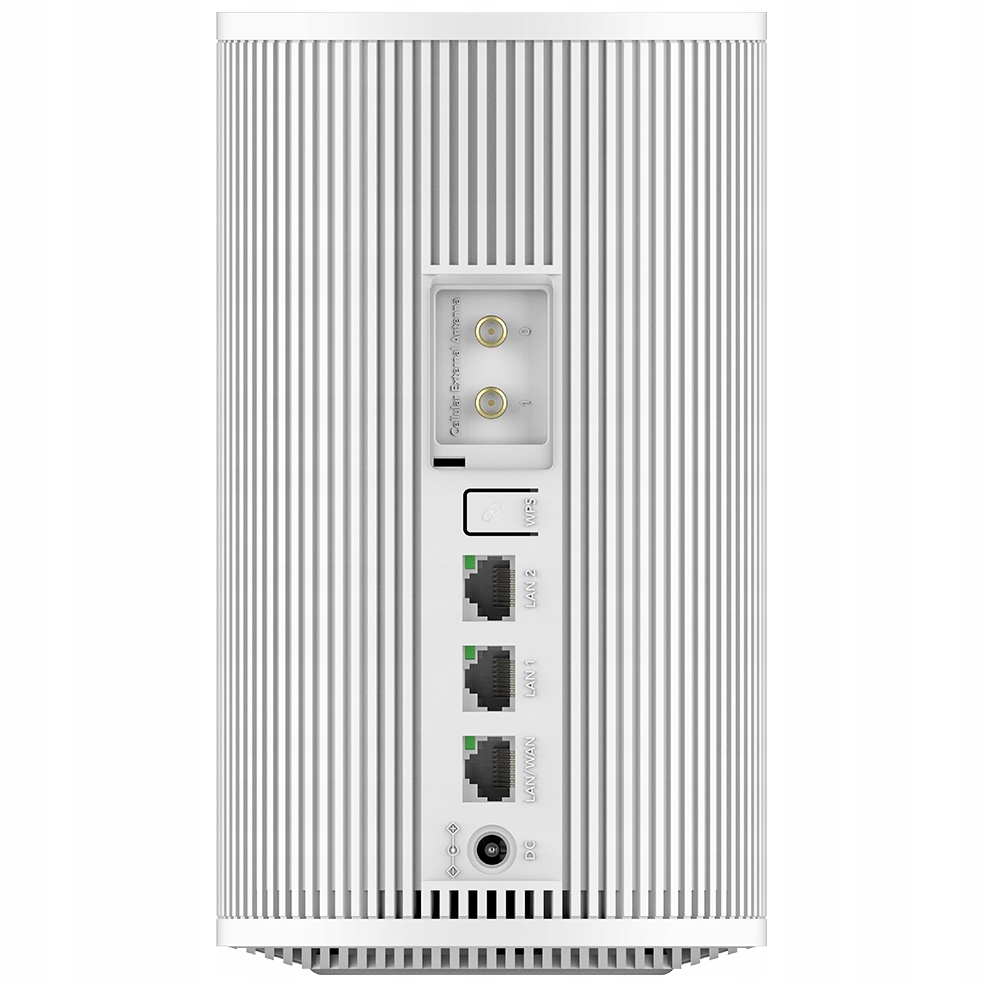 Trzy porty Gigabit Ethernet zapewniają stabilne współdzielenie sieci przewodowej. Dwa złącza SMA umożliwiają instalację niestandardowych anten komórkowych.