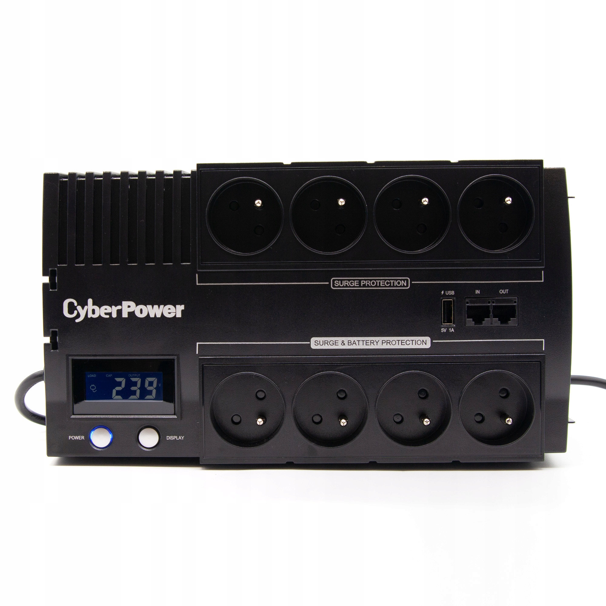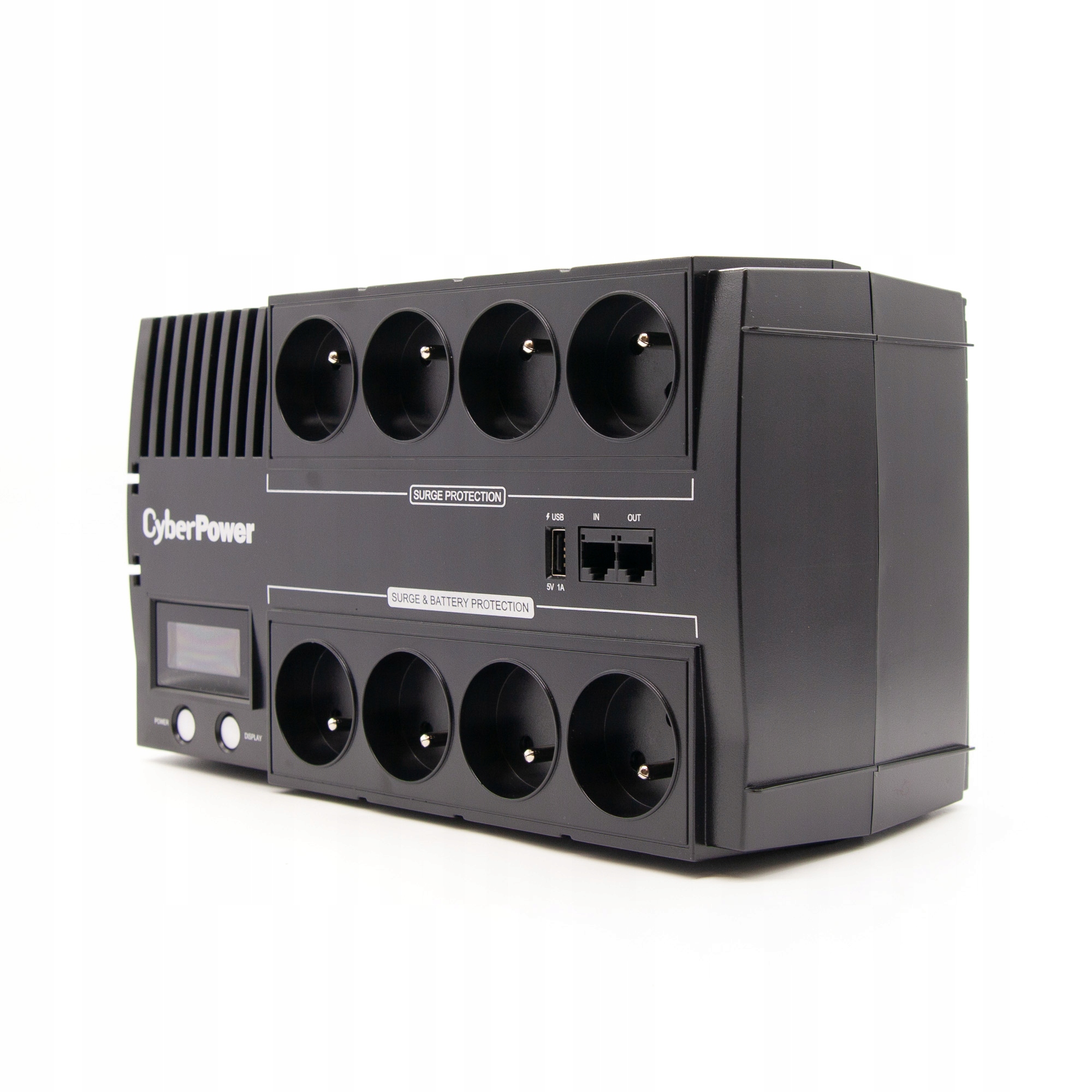 CyberPower BR1000ELCD-FR oferuje użytkownikom domowym i biurowym niezawodne zasilanie rezerwowe baterią oraz zabezpiecza komputery biurowe, sieciowe urządzenia łączności i inne urządzenia elektroniczne przed przepięciami, skokami napięcia, obniżeniem napięcia i innymi problemami z prądem. Dzięki technologii GreenPower UPS™ zwiększa wydajność operacyjną i minimalizuje zużycie energii, pozwalając użytkownikom cieszyć się znacznie mniejszymi kosztami energii w porównaniu z innymi systemami UPS. UPS wykorzystuje automatyczną regulację napięcia (AVR), aby utrzymać bezpieczny poziom napięcia w podłączonych urządzeniach. Funkcja ochrony linii danych chroni telefony, sieci i inne urządzenia łączności przed przepięciami/skokami napięcia i innymi problemami z zasilaniem. Użytkownicy mają dostęp do szczegółowych informacji na temat stanu zasilania/baterii po włączeniu wyświetlacza LCD.