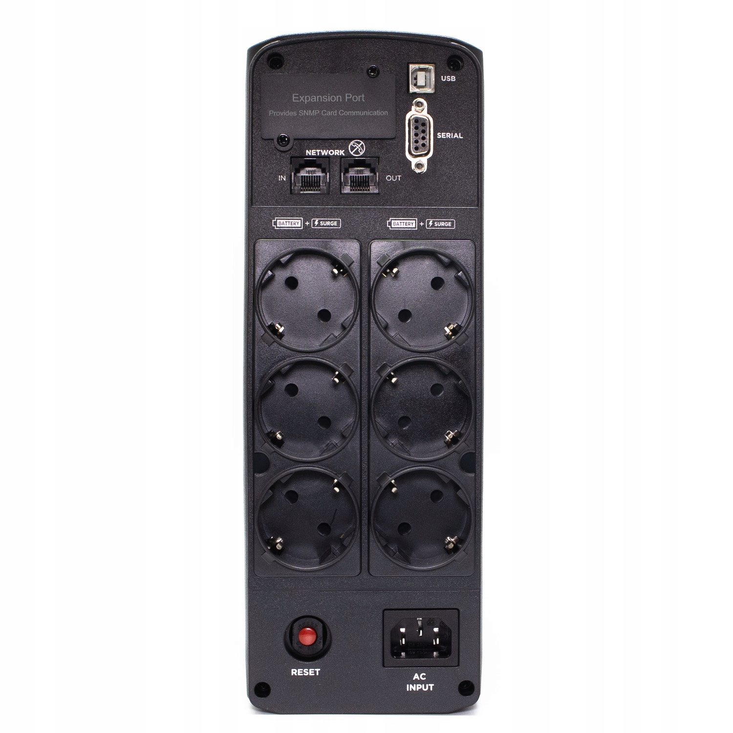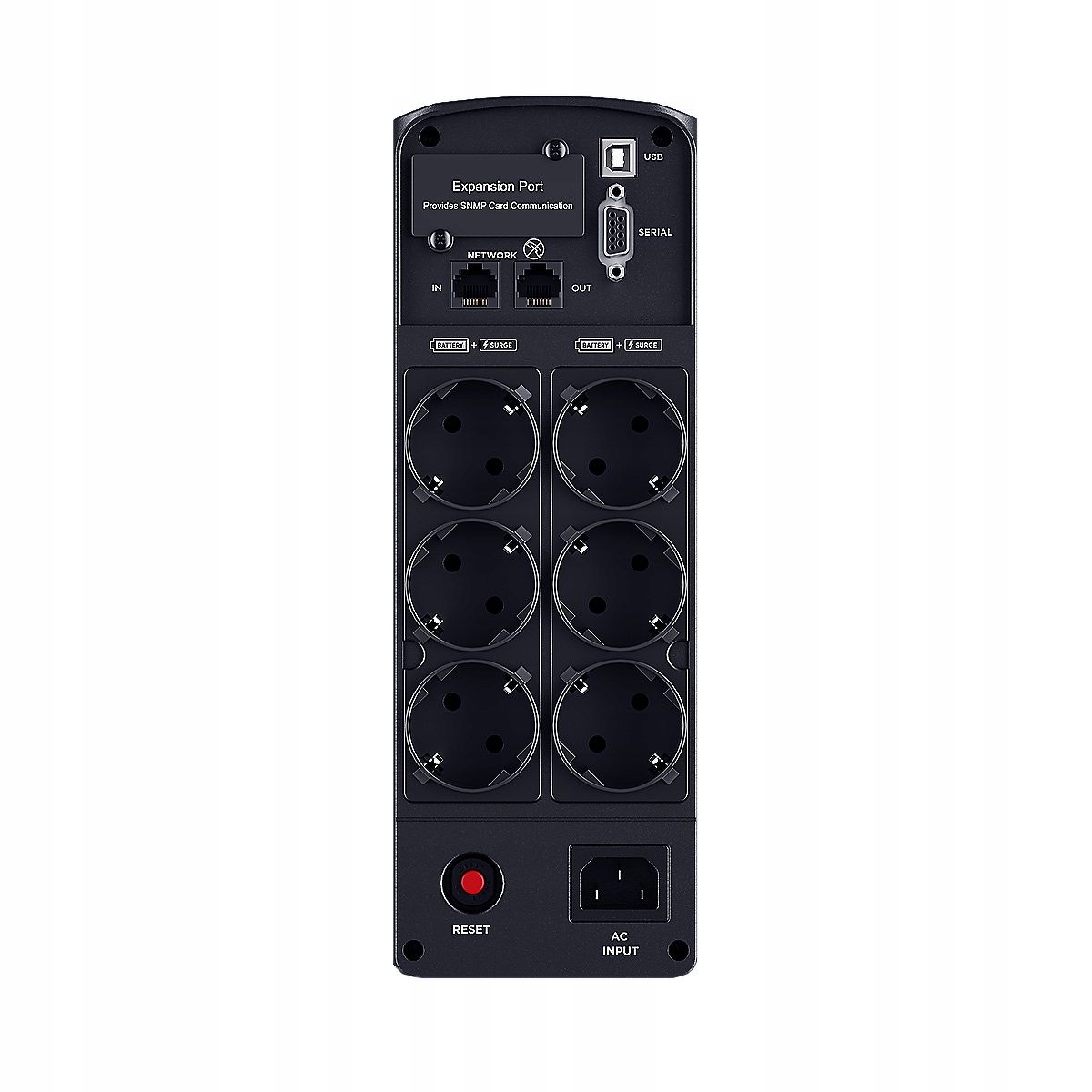 Gniazda UPS zaprojektowane są tak, aby pochłaniać zakłócenia i przepięcia spowodowane przez burzę lub wyładowanie atmosferyczne, dzięki czemu zapewniają kompletną ochronę sprzętu i urządzeń.