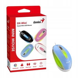 Mysz przewodowa Genius DX-mini LED. Jest mniejsza, jest stylowa z łatwością zmieści się w w kieszonce torby lub plecaka i będzie towarzyszyć w Twojej podróży i pomagać w pracy. Jej elegancka polerowaną powierzchni i podświetleniem LED wyróżnią Cię na tle innych.Dzięki symetrycznemu kształtowi mysz doskonale sprawdzi się u osób prawo i lewo-ręcznych.