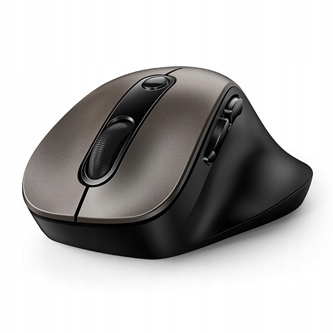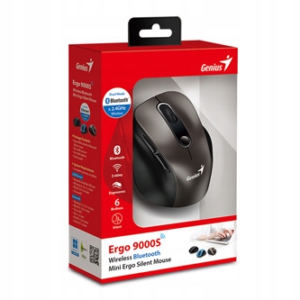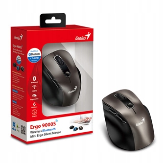 Genius Ergo 9000S Mini to bezprzewodowa mysz o ergonomicznym kształcie, zapewniająca wygodę i komfort użytkowania przez długie godziny. Dzięki zastosowaniu optycznego sensora z możliwością regulacji rozdzielczości nawet do 2400 DPI, zapewnia precyzyjne śledzenie ruchów na ekranie. Połączenie z komputerem odbywa się bezprzewodowo poprzez Bluetooth lub odbiornika USB 2,4 GHz. Co więcej, mysz może być jednocześnie podłączona do aż trzech urządzeń, a użytkownik może łatwo przełączać się między nimi za pomocą jednego przycisku (tryb Dual BT + 2,4 GHz).