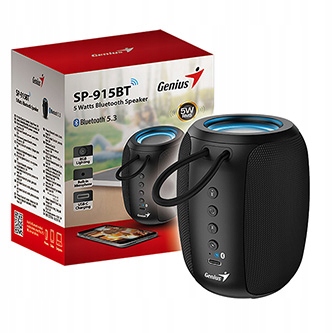 Genius SP-915BT to mobilny, nowoczesny i stylowy głośnik, który łączy w sobie świetny dźwięk, efektowne podświetlenie i praktyczne funkcje, idealnie sprawdzając się zarówno w domu, jak i w podróży.