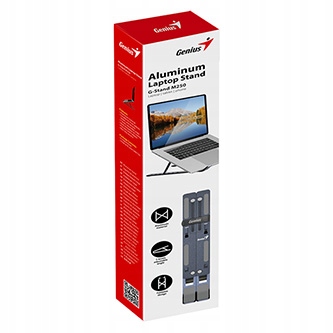 Genius G-Stand M250 to ergonomiczna podstawka pod laptop, która umożliwia regulację kąta nachylenia i wysokości w siedmiu stopniach, co pomaga zmniejszyć napięcie w plecach i karku oraz wspiera prawidłową postawę podczas pracy. Dzięki solidnej i stabilnej konstrukcji zapewnia bezpieczne użytkowanie nawet dla większych laptopów.