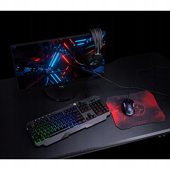 - Stylowy design w czerwono-czarnym kolorze z logo Marvo w centrum podkreśla gamingowy charakter zestawu.