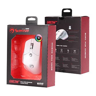 Optyczny sensor PAW3212 działa doskonale na niemal każdej powierzchni, a regulowane DPI od 1600-2400-3200-4000 zadowolą każdego użytkownika. Mysz Marvo G803 posiada 6 programowalnych przycisków - możesz przypisać je według własnych preferencji, co ułatwi pracę lub zwiększy możliwości podczas gry. Cichy klik to poszukiwany atut dzięki, któremu pracujesz lub bawisz się bez generowania hałasu.