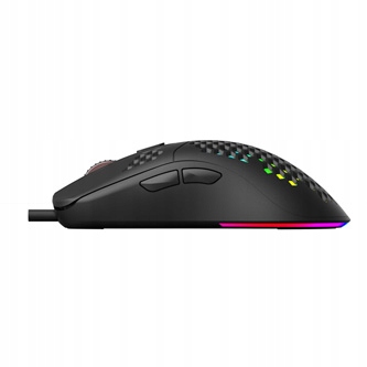 Mysz o budowie "honeycomb" zmniejsza wagę gryzonia zachowując jednocześnie solidną i trwała konstrukcję oraz ułatwia wentylację dłoni. Pod plastrem umieszczone zostały diody LED RGB o zakresie 16 mln kolorów. Użytkownik może modyfikować tryb podświetlenia za pomocą przycisku ukrytego na spodzie myszki. Indywidualne podświetlenie, jasność i szybkość zmiany trybów RGB możliwe jest z poziomu oprogramowania.Myszka wyposażona jest w 4 ślizgacze, które doskonale niwelują tarcie w trakcie o powierzchnie podkładki lub blatu biurka.