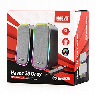 Marvo Havoc 20 to para głośników stereo o mocy RMS 3W x 2, które zapewniają pełne, wyraziste brzmienie. Wyposażone w 2-calowe przetworniki oraz szeroki zakres częstotliwości od 150 Hz do 20 kHz, gwarantują głębokie basy, wyraźne średnie tony i czyste wysokie dźwięki. Bez względu na to, czy grasz, oglądasz filmy, czy słuchasz muzyki – dźwięk zawsze pozostaje klarowny i realistyczny.