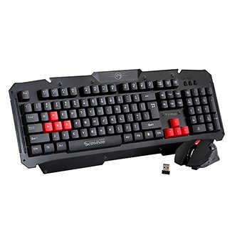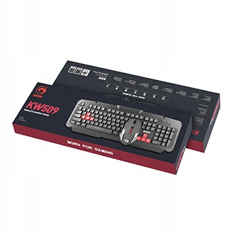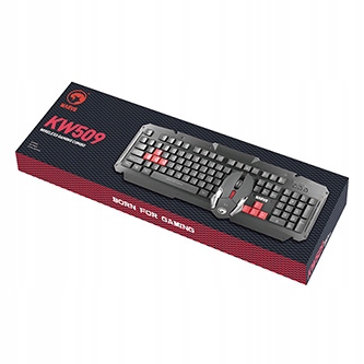Bezprzewodowy zestaw gamingowy Marvo KW509 składa się z klawiatury membranowej z układem klawiatury CZ/SK oraz myszy optycznej.