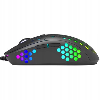Symetryczny kształt z niewielkim wcięciem po środku, niska waga 76g pozwalają na wygodne uchwycenie i prowadzenie myszy. Za precyzję odpowiada sensor optyczny o regulowanej skokowo rozdzielczości od 800 do 6400 DPI. Po zainstalowaniu aplikacji użytkownik może samodzielnie ustawić 6 poziomów DPI od 500 do 6400.