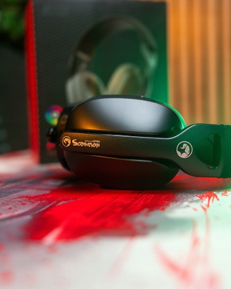 Nauszniki słuchawek Marvo wykonane są z wyjątkowo miękkiej pianki, pokrytej przyjemną w dotyku tkaniną. Ich ergonomiczny kształt oraz odpowiednie dopasowanie do kształtu ucha zapewniają wygodę nawet podczas długich sesji grania, a także są przyjazne dla graczy noszących okulary korekcyjne.