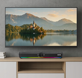 Soundbar Marvo nie zna granic i dlatego jest doskonałym towarzyszem do słuchania muzyki lub oglądania filmów. Jeśli masz już dość grania i chcesz się wyłączyć, po prostu usiądź wygodnie i ciesz się relaksem. Czy miałeś już dość odpoczynku? A co z filmami? Nawet soundbar 2.0 potrafi miło zaskoczyć i oferuje lepszy dźwięk niż jakikolwiek telewizor. Dodatkowo wieczorny klimat doskonale dopełnia podświetlenie RAINBOW, które znajduje się na dolnym pasku soundbara - zapewnia aż 5 różnych kolorów + 1 efekt RGB. Kabel o długości 1,5 metra zapewnia wystarczająco dużo miejsca i możesz umieścić soundbar w dowolnym miejscu. Dodatkowo obok pokrętła głośności po obu stronach znajdziemy wejścia na słuchawki lub mikrofon.
