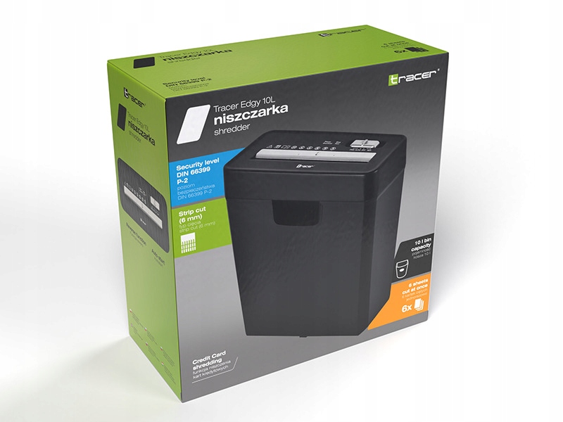 Niszczarka Tracer Edgy może jednocześnie pociąć do 6 kartek papieru, co znacząco przyspiesza proces niszczenia dokumentów.
