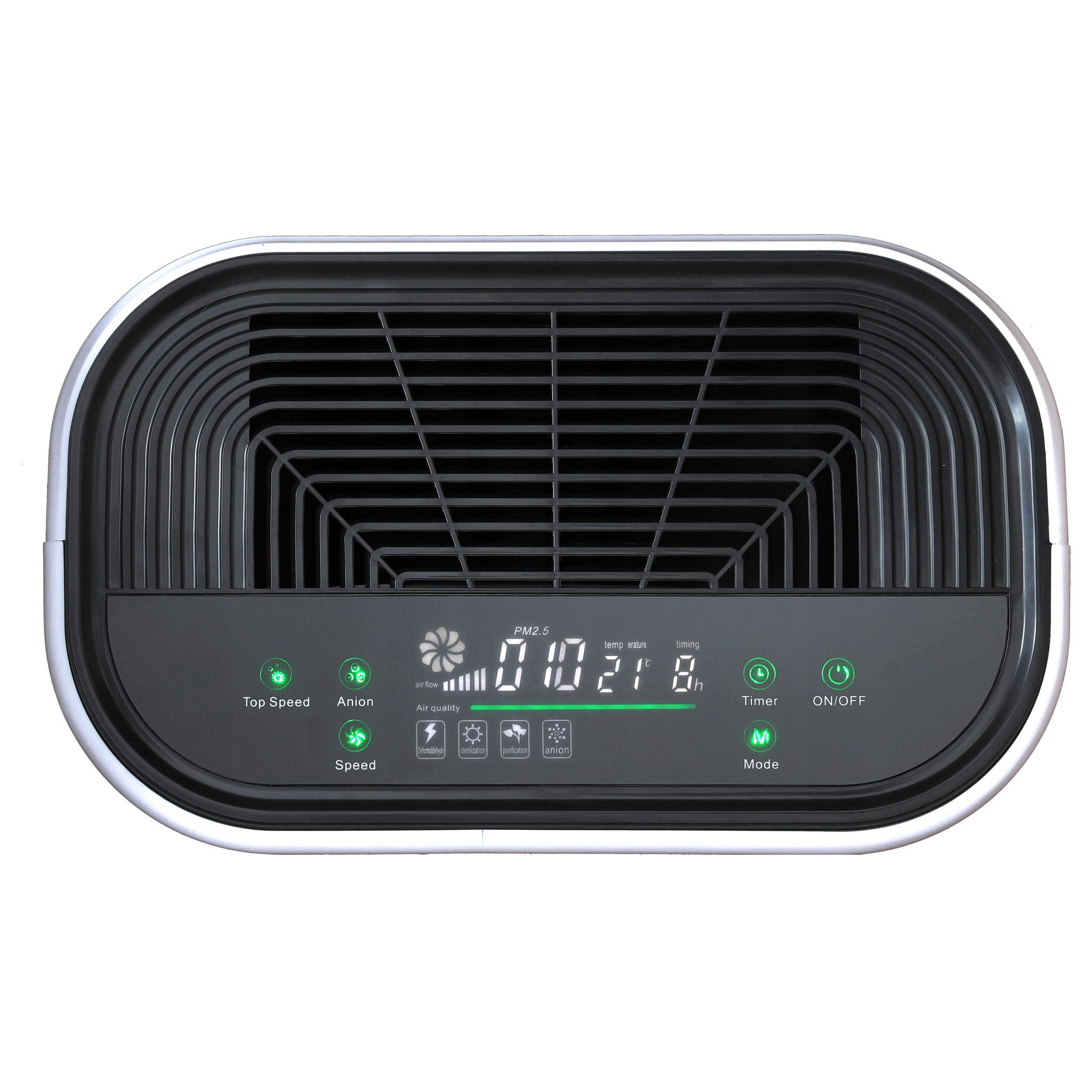 Oczyszczacz powietrza model V05 wyposażony jest w czujnik cząstek PM 2.5 informujący o jakości powietrza w pomieszczeniu.