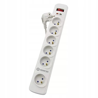 Powerton PLUGIX to podstawowa wersja ochrony przeciwprzepięciowej przeznaczona do zabezpieczania urządzeń elektronicznych przed szkodliwymi skutkami nagłych skoków napięcia w sieci. Posiada sześć gniazd zasilających, z czego jedno zostało specjalnie oddzielone większym odstępem. Dzięki temu umożliwia wygodne podłączenie większych zasilaczy bez blokowania sąsiednich gniazd, co często stanowi problem w standardowych listwach.