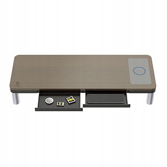 Dwie praktyczne szufladki umożliwiają przechowywanie niezbędnych akcesoriów biurowych, a solidne metalowe nóżki z możliwością odkręcenia zapewniają stabilność oraz dopasowanie do różnych powierzchni. Konstrukcja o nośności do 20 kg pozwala na bezpieczne umieszczenie nawet dużych monitorów.