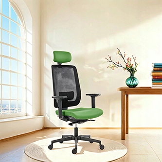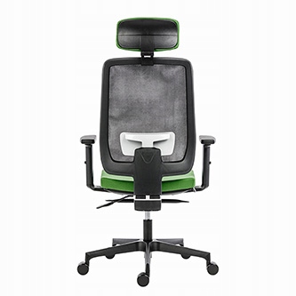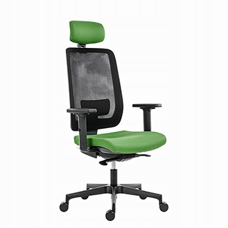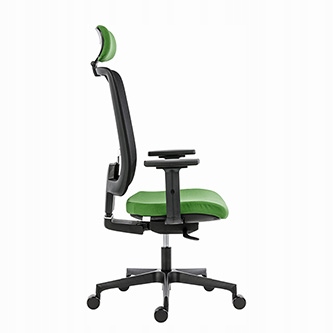 Fotel wykonany został z trwałych materiałów wysokiej jakości. Tapicerowane siedzisko i siatkowe oparcie zapewniają wygodę oraz doskonałą cyrkulację powietrza, co poprawia komfort pracy nawet w cieplejszych warunkach. Zintegrowane, regulowane podparcie lędźwiowe oraz zagłówek umożliwiają indywidualne dopasowanie do sylwetki użytkownika.
