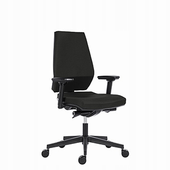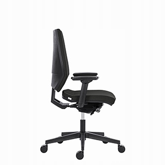Regulacja wysokości oparcia w systemie UP DOWN oraz wyraźnie zaznaczone podparcie lędźwiowe ułatwiają utrzymanie zdrowej postawy i ograniczają napięcia mięśni pleców. Podłokietniki z możliwością regulacji w trzech płaszczyznach (wysokość, głębokość, kąt nachylenia) gwarantują idealne dopasowanie do pozycji rąk i barków, co chroni przed przeciążeniami.