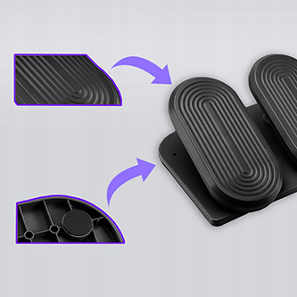 Pedały podnóżka posiadają specjalnie zaprojektowaną strukturalną powierzchnię, która masuje stopy podczas ćwiczeń. Taki masaż stymuluje krążenie krwi, poprawiając komfort i zapewniając przyjemne doznania, zwłaszcza przy dłuższym użytkowaniu. Struktura pedałów dodatkowo zapewnia stabilność stóp, co minimalizuje ryzyko poślizgnięcia się.