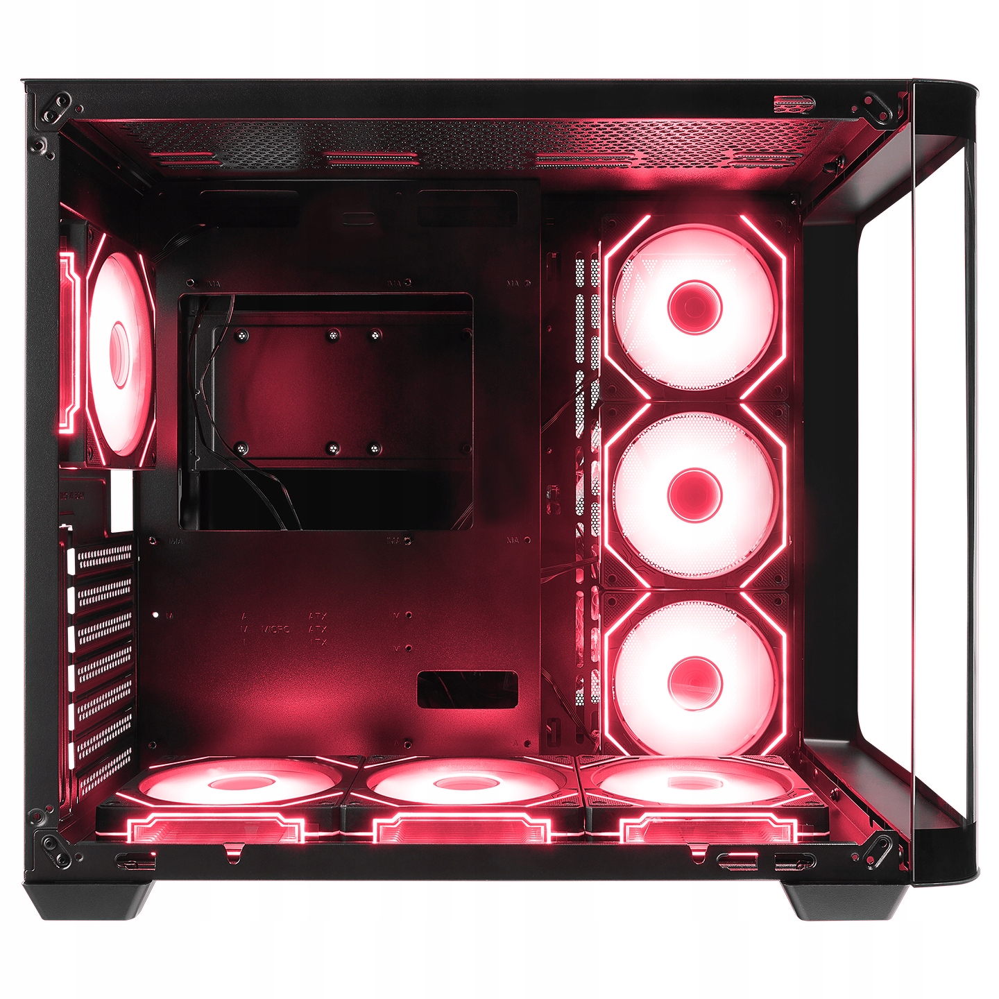 Front i boczny panel wykonane z hartowanego szkła to nie tylko wytrzymałość, ale i możliwość prezentacji wnętrza komputera w pełnej krasie. Podświetlane wentylatory i starannie dobrane komponenty będą wyglądały jeszcze lepiej w takiej oprawie.