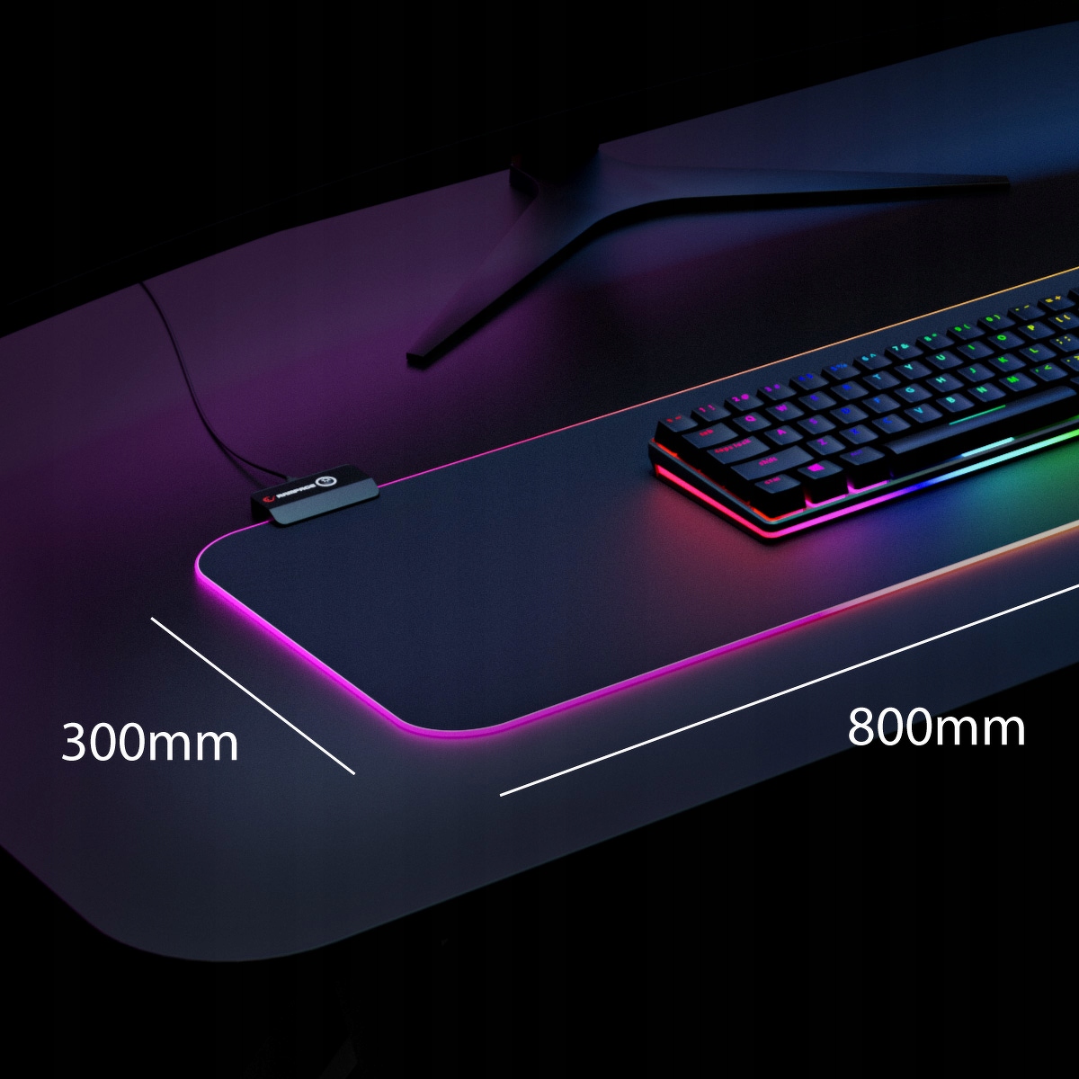 Rampage MP-24 to podkładka pod mysz, która zapewni ci komfort i styl na najwyższym poziomie. Dzięki dużej powierzchni 800x300 mm, podświetleniu RGB i antypoślizgowej podstawie, ta podkładka jest idealnym wyborem dla graczy ceniących wygodę i wyjątkowy wygląd swojego stanowiska.