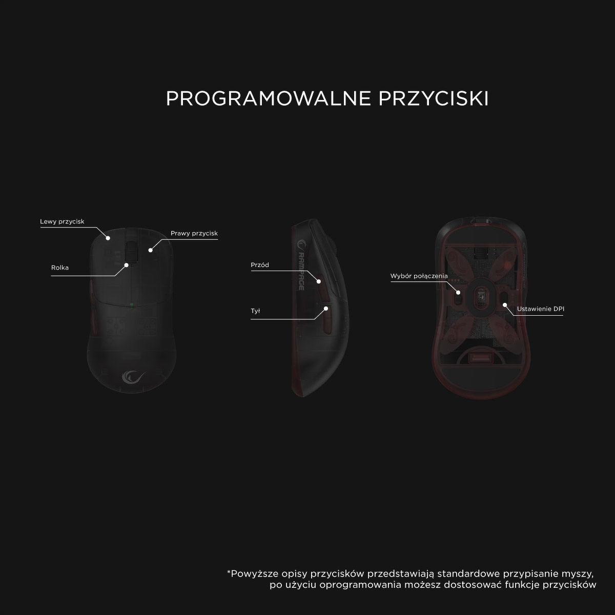 Rampage Tilion został wyposażony w przełączniki Huano o żywotności aż 80 milionów kliknięć. Dzięki temu możesz liczyć na płynną pracę i wyraźną reakcję nawet po wielu miesiącach intensywnego użytkowania. Każde kliknięcie to pewność działania.