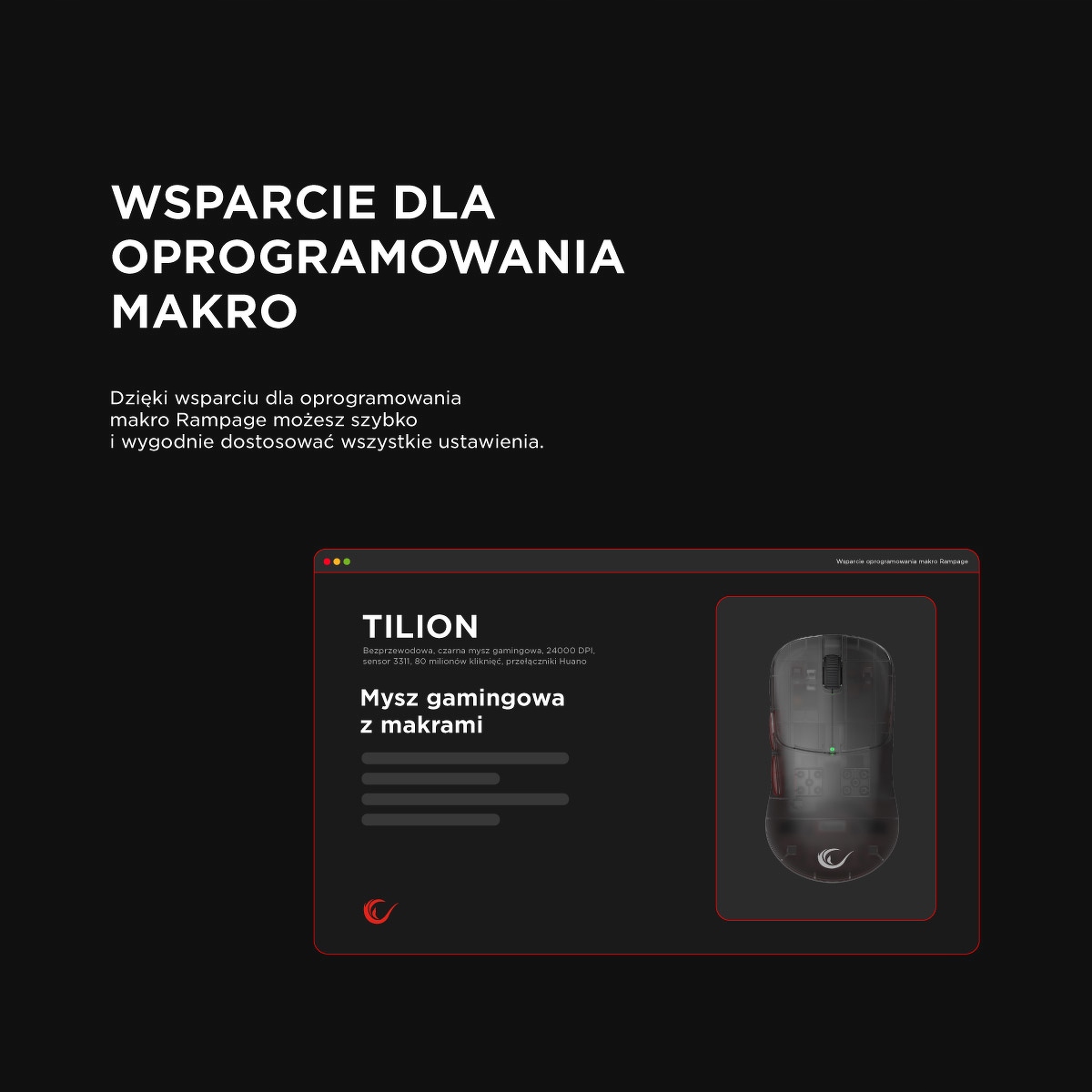 Rampage Tilion to pełna swoboda działania bez kompromisów. Łączność bezprzewodowa działa stabilnie i bez opóźnień, dzięki czemu możesz w pełni skupić się na rozgrywce – bez kabli, które Cię ograniczają.