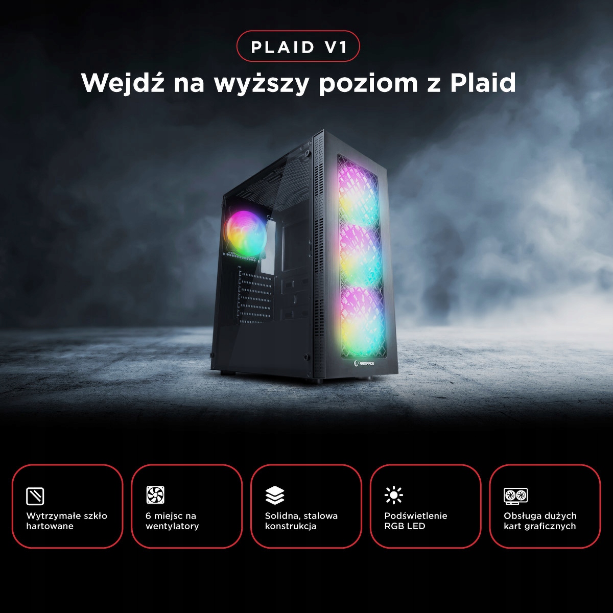 Jeśli właśnie rozglądasz się za obudową, która będzie dobrze wyglądać, nie przegrzeje Ci podzespołów i nie ograniczy przy rozbudowie sprzętu – dobrze trafiłeś. Rampage Plaid V1 to czarna obudowa PC z dużym oknem z hartowanego szkła, która oferuje wszystko, czego potrzebujesz do złożenia mocnego, dobrze wentylowanego zestawu gamingowego.
