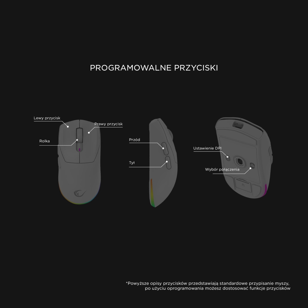 Technologia bezprzewodowa w Rampage Prote M5 zapewnia stabilne połączenie i eliminację opóźnień. Możesz zapomnieć o plączących się przewodach i skupić się na rozgrywce. To swoboda działania, której oczekujesz od nowoczesnego sprzętu gamingowego.