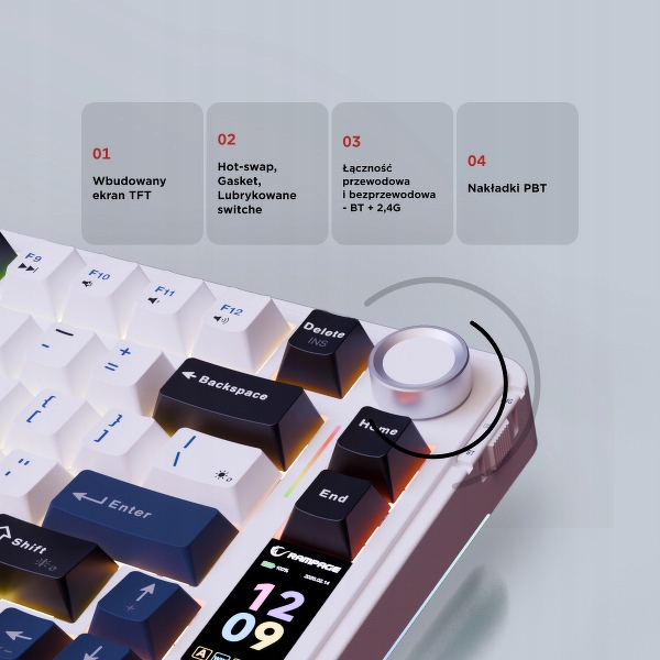 Elastyczna konstrukcja gasket sprawia, że klawisze naciskają się płynniej i ciszej. To różnica, którą odczujesz już przy pierwszej sesji – dłużej grasz, mniej się męczysz i bardziej cieszysz się grą.