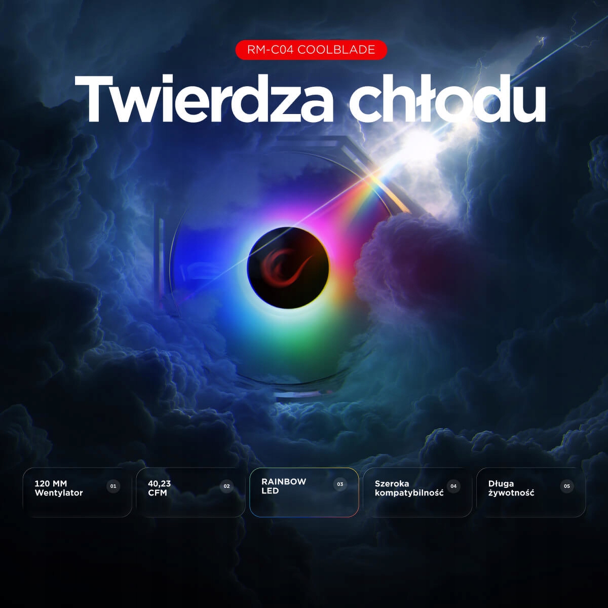 Twój komputer to nie tylko sprzęt – to centrum dowodzenia, arena i klimat rozgrywki. Rampage RM-C04 Coolblade Rainbow to wentylator CPU, który nie tylko chłodzi, ale robi to z rozmachem – łącząc moc 40.23 CFM z hipnotyzującym podświetleniem Rainbow LED. Zaprojektowany dla graczy, którzy chcą sprzętu „z pazurem”.