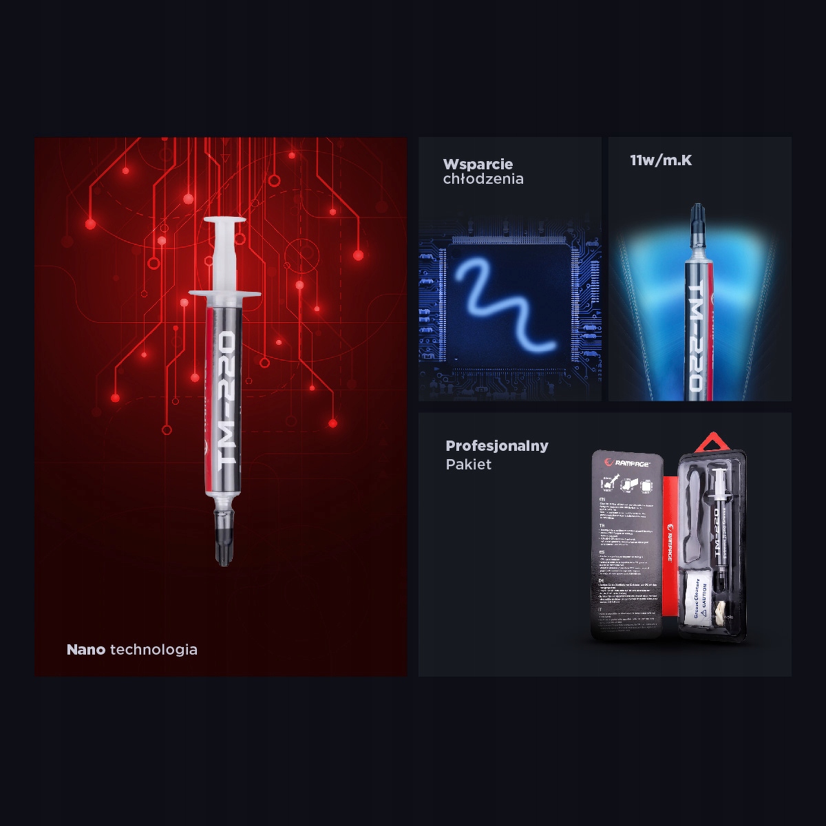 Rampage TM-220 to idealny wybór dla każdego, kto chce zapewnić swojemu komputerowi maksymalną wydajność i niezawodność. Dzięki łatwej aplikacji, wysokiej przewodności cieplnej i bezpieczeństwu użytkowania, pasta ta stanie się nieodłącznym elementem Twojego zestawu narzędzi do konserwacji sprzętu. Wypróbuj ją już dziś i zadbaj o swój komputer!