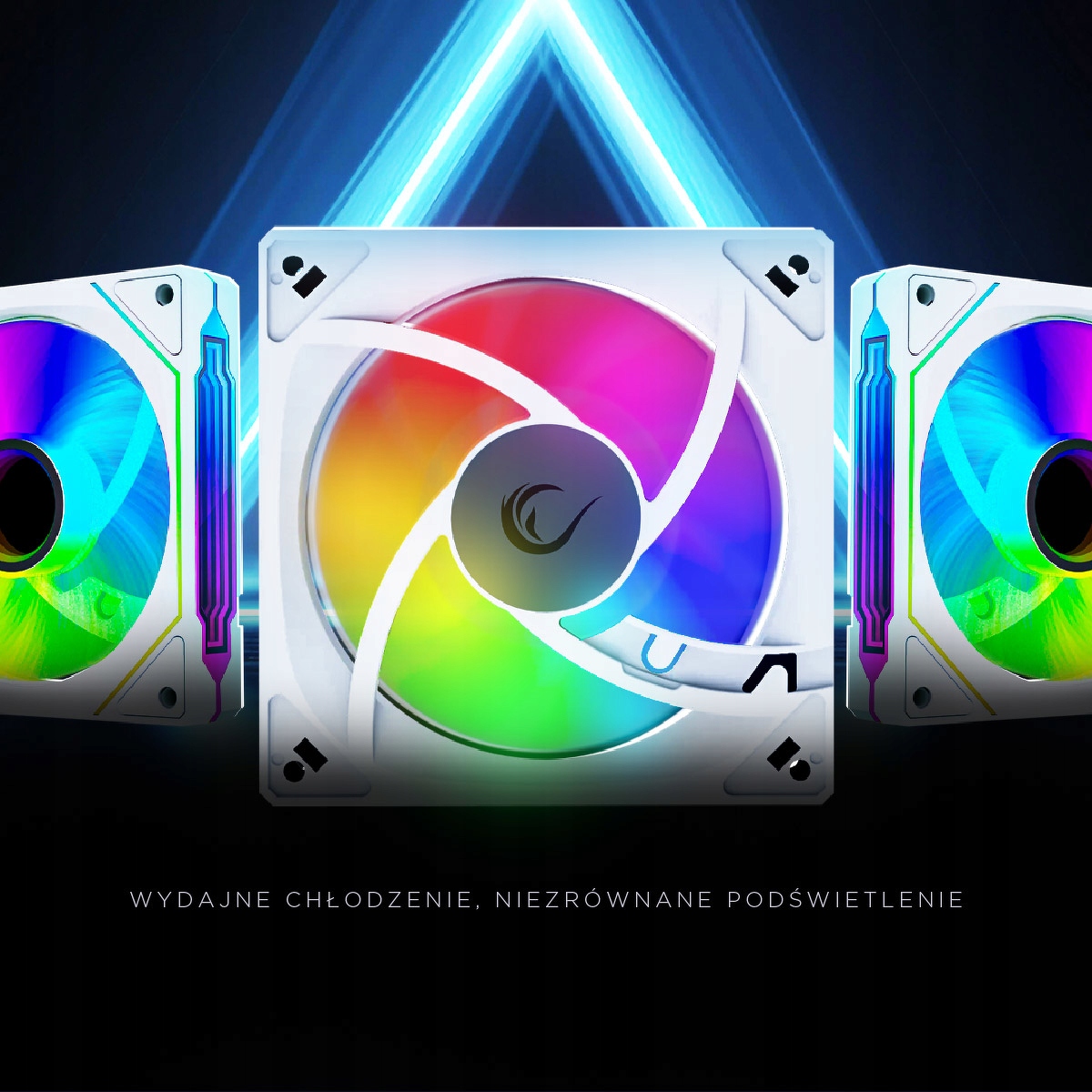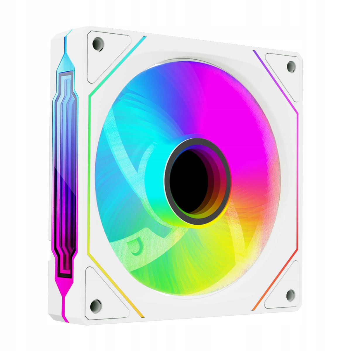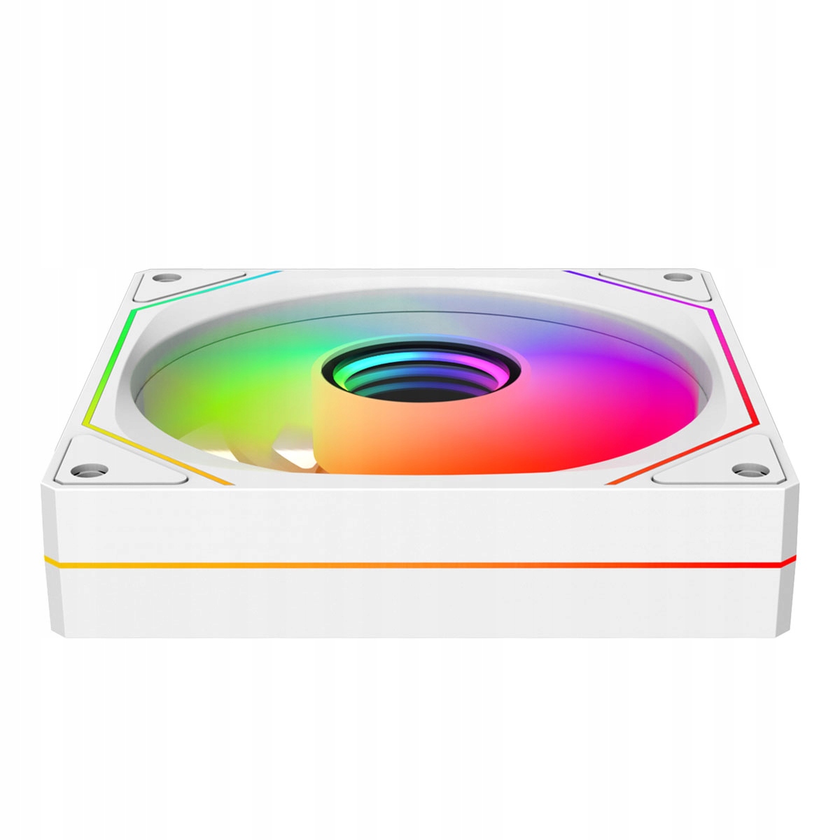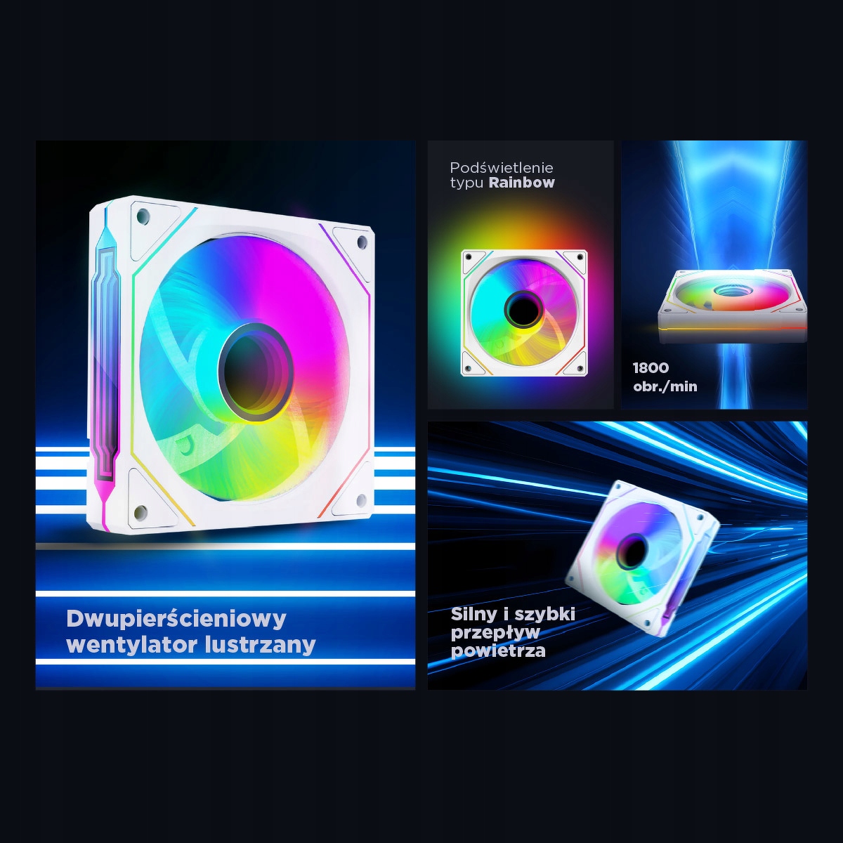 Sercem wentylatora jest lustrzany środek z efektem infinity – podświetlenie w nim tworzy iluzję głębi, która przyciąga wzrok i dodaje zestawowi wyjątkowego stylu. To jeden z tych elementów, który podnosi poziom estetyki każdego PC – niezależnie od reszty konfiguracji.