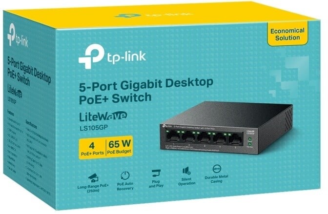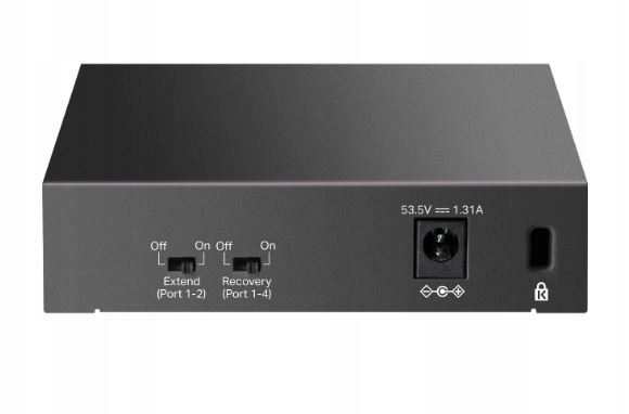 | Porty | • 5 portów RJ45 10/100/1000 Mb/s (Porty 1–4 z wyjściem PoE+ 802.3af/at) • Auto Negocjacja • Auto MDI/MDIX  |