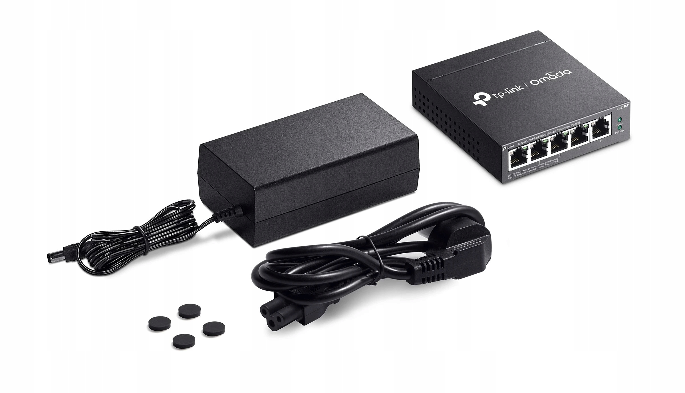 - 5 portów RJ45 10/100/1000 Mb/s (Porty 1-4 obsługują 802.3at PoE+ oraz 802.3af PoE)
