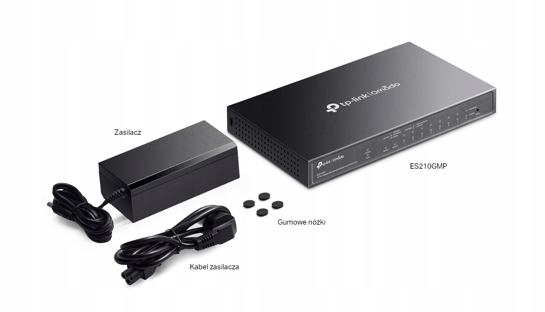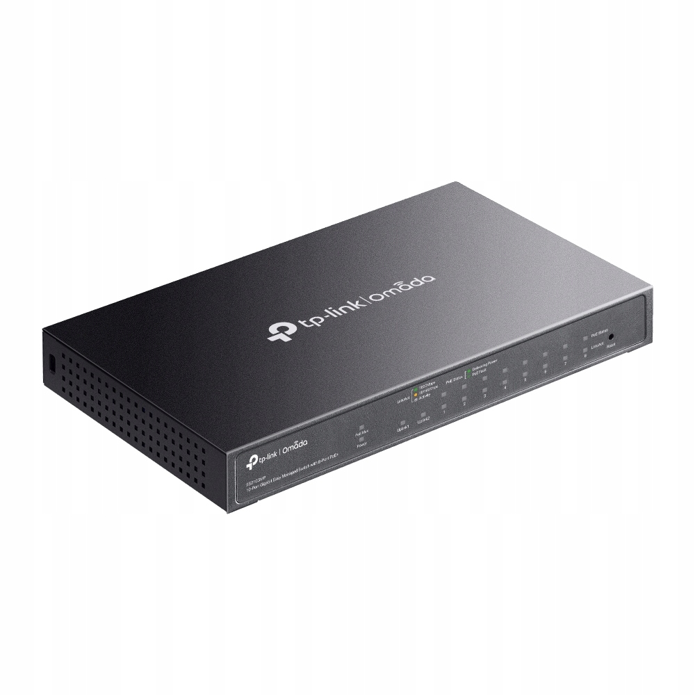- 8 portów RJ45 10/100/1000 Mb/s PoE+ (802.3af i 802.3at)