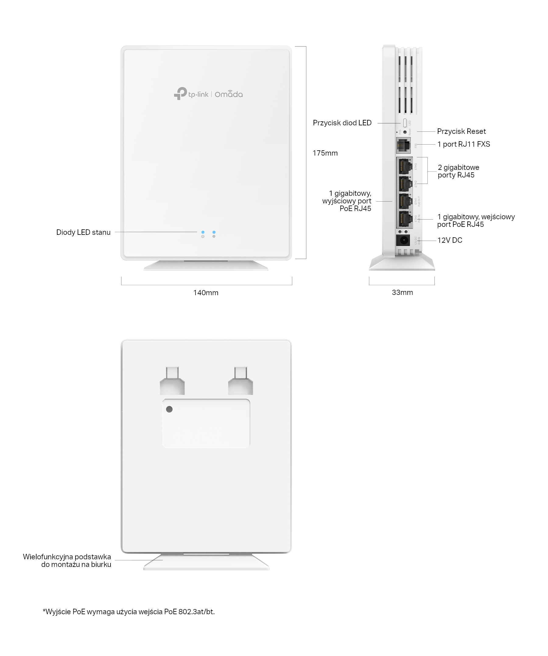 Pobór mocy: 17,3W (bez wyjścia PoE)
