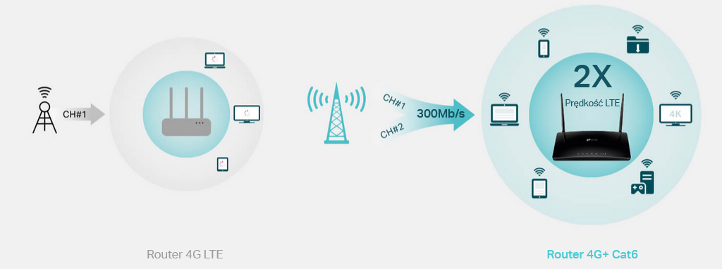 Niezależnie czy oglądasz filmy w jakości HD, pobierasz biblioteki danych, grasz w gry online, router Archer MR500 oferując prędkość pobierania do 300Mb/s spełni wymagania Twojego urządzenia. Tak szybkie połączenie jest możliwe dzięki technologii agregacji pasm 4G+ (Carrier Aggregation) przyspiesza łącze internetowe.