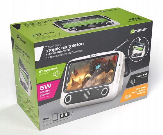 Tracer TV79 to innowacyjne urządzenie o wyglądzie retro telewizora. Designerski głośnik Bluetooth z miejscem na telefon, szybko odmieni Twoje pomieszczenie. Stojak Tracer TV79 jest niezwykle kompaktowy i zapewnia pełną stabilność i bezpieczeństwo Twojego smartfona. Wbudowany głośnik o mocy 5W zapewnia bardzo dobre brzmienie. Wystarczy umieścić telefon na stojaku i można oglądać wszelkiego rodzaju treści: filmy, transmisje sportowe, przepisy kulinarne.