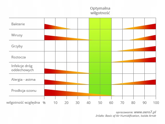 Odpowiednia wilgotność w pomieszczeniu zmniejsza możliwość rozwoju drobnoustrojów, poprawia odporność organizmu, wzmacnia mocny sen oraz jest korzystne dla alergików i astmatyków.