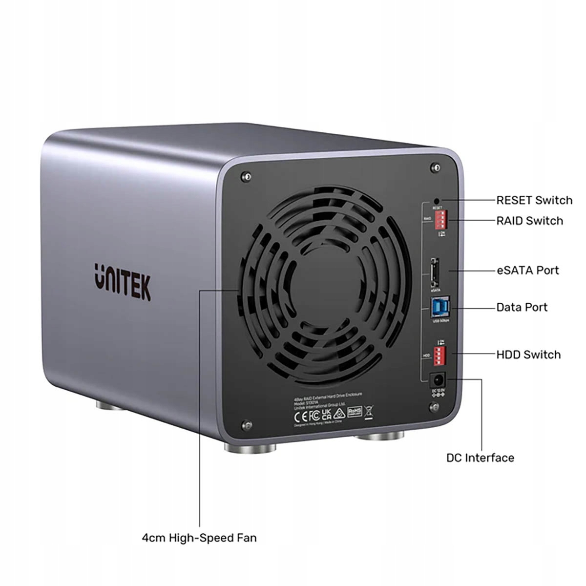 Wydajna praca wielu dysków generuje ciepło, dlatego obudowę wyposażono w cichy, 80-milimetrowy wentylator. Dba on o utrzymanie optymalnej temperatury wewnątrz, zapewniając stabilną i niezawodną pracę przez 24 godziny na dobę. Aluminiowy korpus dodatkowo wspomaga odprowadzanie ciepła.