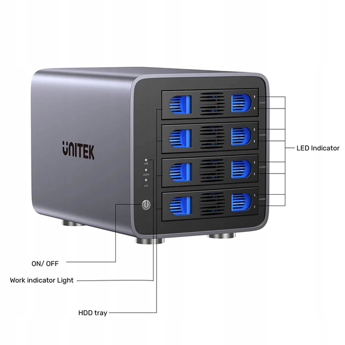 Zapomnij o skomplikowanym oprogramowaniu do zarządzania macierzą. Tryb RAID ustawiasz za pomocą prostych przełączników z tyłu obudowy, a czytelne diody LED informują Cię o statusie pracy każdego z dysków. Podłączasz urządzenie jednym kablem USB i jest ono gotowe do działania.