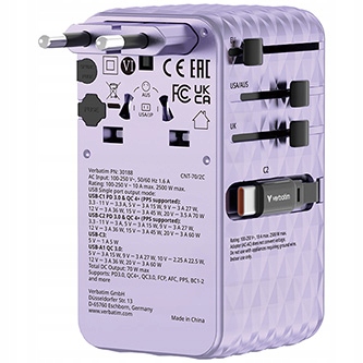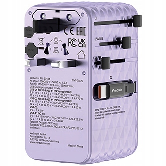 Verbatim Charge n Travel to uniwersalny adapter podróżny nowej generacji, który łączy zaawansowaną technologię z kompaktową formą i praktycznymi funkcjami, idealny dla podróżujących na całym świecie. Dzięki innowacyjnej technologii GaN III, urządzenie zapewnia wysoką efektywność ładowania przy jednoczesnym zachowaniu niewielkich rozmiarów i niskiej wagi.