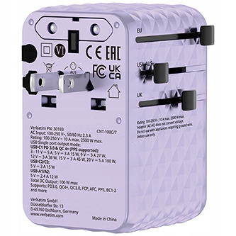 Obudowa o nowoczesnym designie 3D w kolorze czarnym wykonana jest z ognioodpornego poliwęglanu klasy premium, co zapewnia wytrzymałość i bezpieczeństwo. Adapter posiada certyfikaty CE, UKCA, FCC i ROHS oraz bezpiecznik BS1362 10A (w zestawie zapasowy) i praktyczne etui podróżne.
