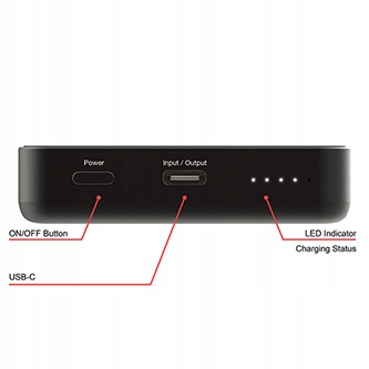 Power bank został wyposażony w dwukierunkowy port USB-C, dzięki czemu możesz jednocześnie ładować swoje urządzenie i sam power bank. Wbudowany wskaźnik LED informuje o poziomie naładowania baterii, a zaawansowane zabezpieczenia dbają o bezpieczeństwo użytkowania.
