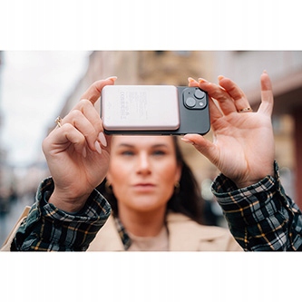 Do power banku dołączony jest kabel typu C do typu C oraz dodatkowy metalowy pierścień, który można przymocować do telefonu lub etui na telefon, aby w razie potrzeby zapewnić silne magnetyczne mocowanie.