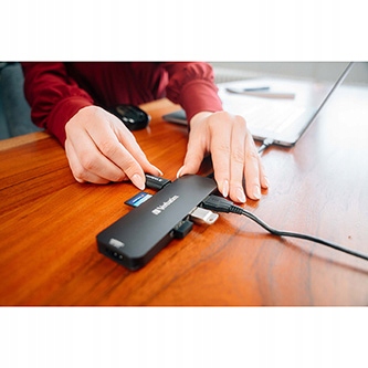 Dzięki koncentratorowi Verbatim CMH-08 USB-C® Pro możesz zabrać ze sobą cały komputer stacjonarny, zachowując jednocześnie mobilność i elastyczność pracy.